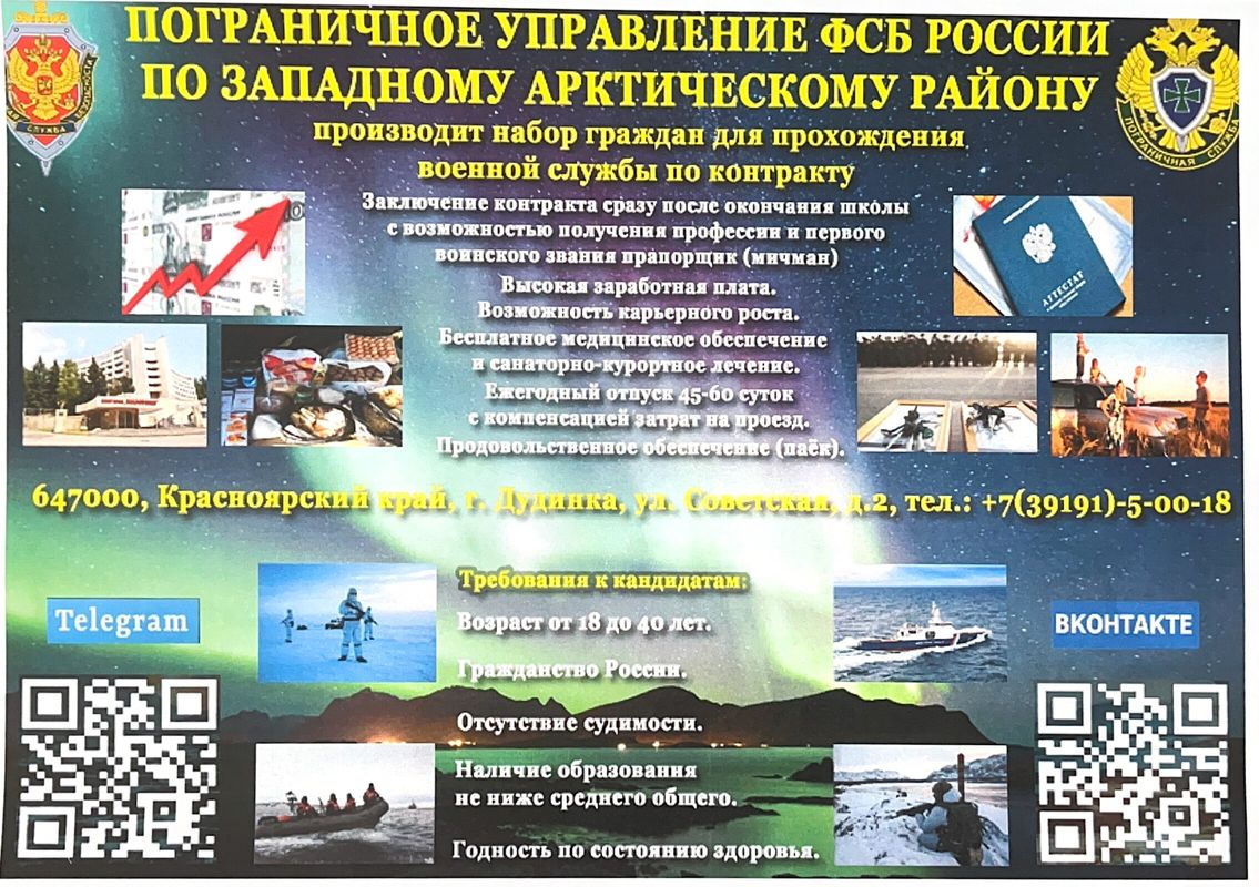 Пограничное управление ФСБ России по западному арктическому району проводит набор граждан для прохождения военной службы по контракту.