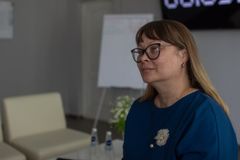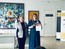 Заведующая отделом по вопросам профессионального образования Красноярской краевой организации Общероссийского Профсоюза образования Наталья Беспрозванных выступила с приветственным словом и наградила преподавателя Канского политехнического колледжа Алену Валерьевну Самохину денежным сертификатом на 50 тысяч рублей.